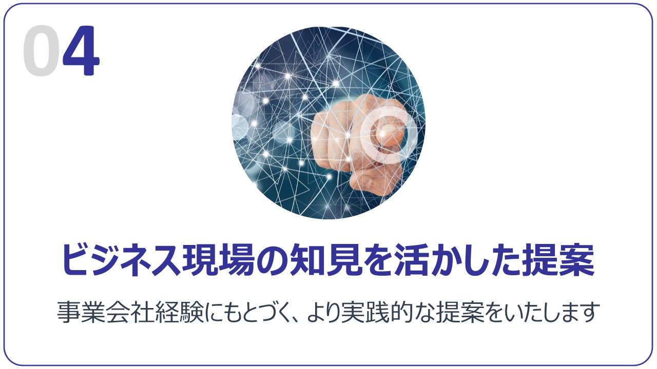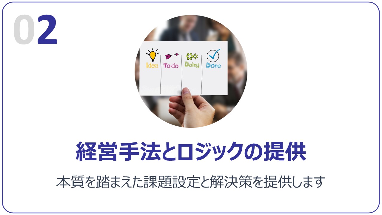 上場企業と同等の経営管理機能をベースに、従業員の能力を最大限に発揮できる企業構造づくりを目指し、ストーリー化の力によって戦略策定のサポートをします。
